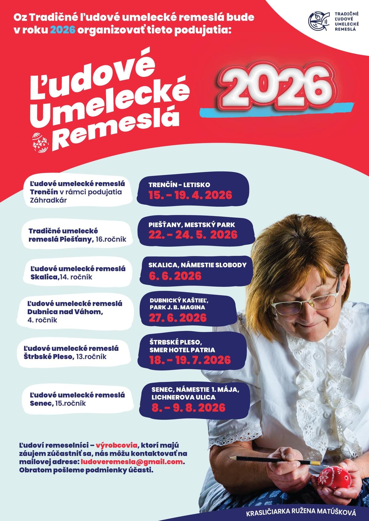 ak sa chcete zúčastniť na podujatí Ľudové umelecké remeslá v roku 2026, môžete sa prihlásiť na email: ludoveremesla@gmail.com. Obratom Vám pošleme podmienky prijatia, resp. odpoveď na Vašu žiadosť.